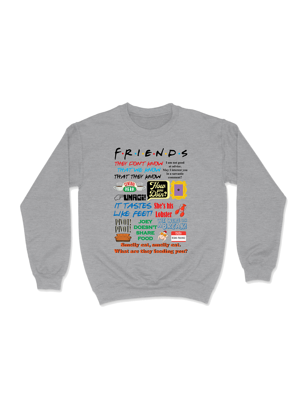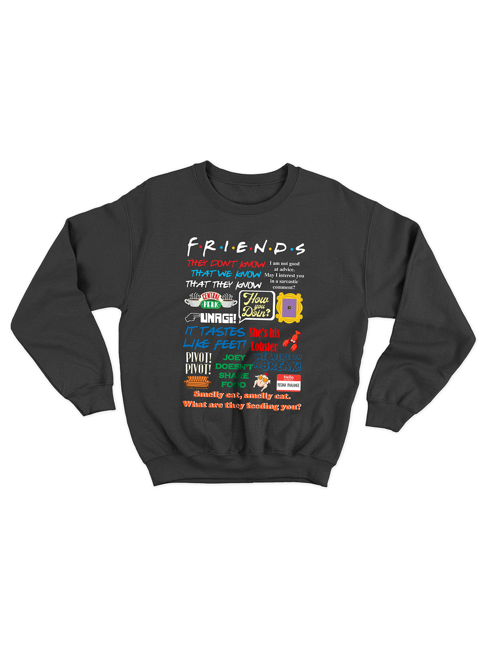 Para quienes “will be there for you” siempre. Este pullover reúne las frases más memorables de la serie que marcó generaciones. Un must para los fanáticos que no pueden evitar decir “How you doin’?” o “We were on a break!” cada vez que pueden.