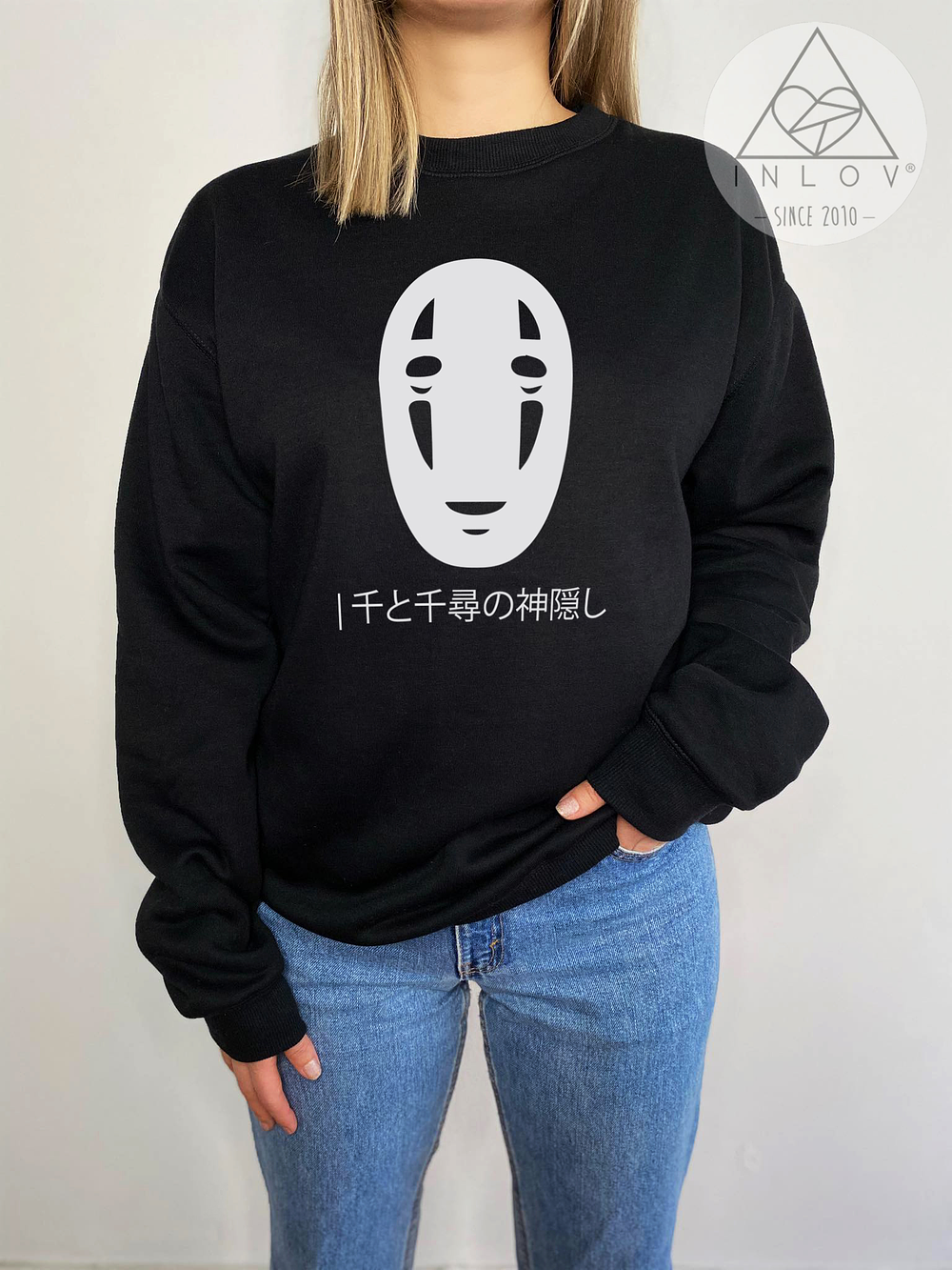 Lleva el misterio y la magia de No Face de El viaje de Chihiro con el Pullover No Face. Perfecto para fans del anime que quieren mostrar su conexión con este enigmático personaje lleno de simbolismo.